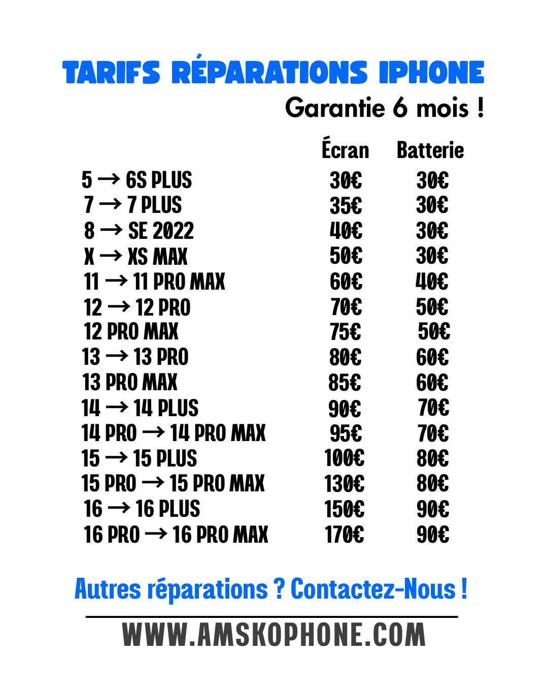 Découvrez, ci-dessus, les tarifs de réparation pour les modèles d’iPhone